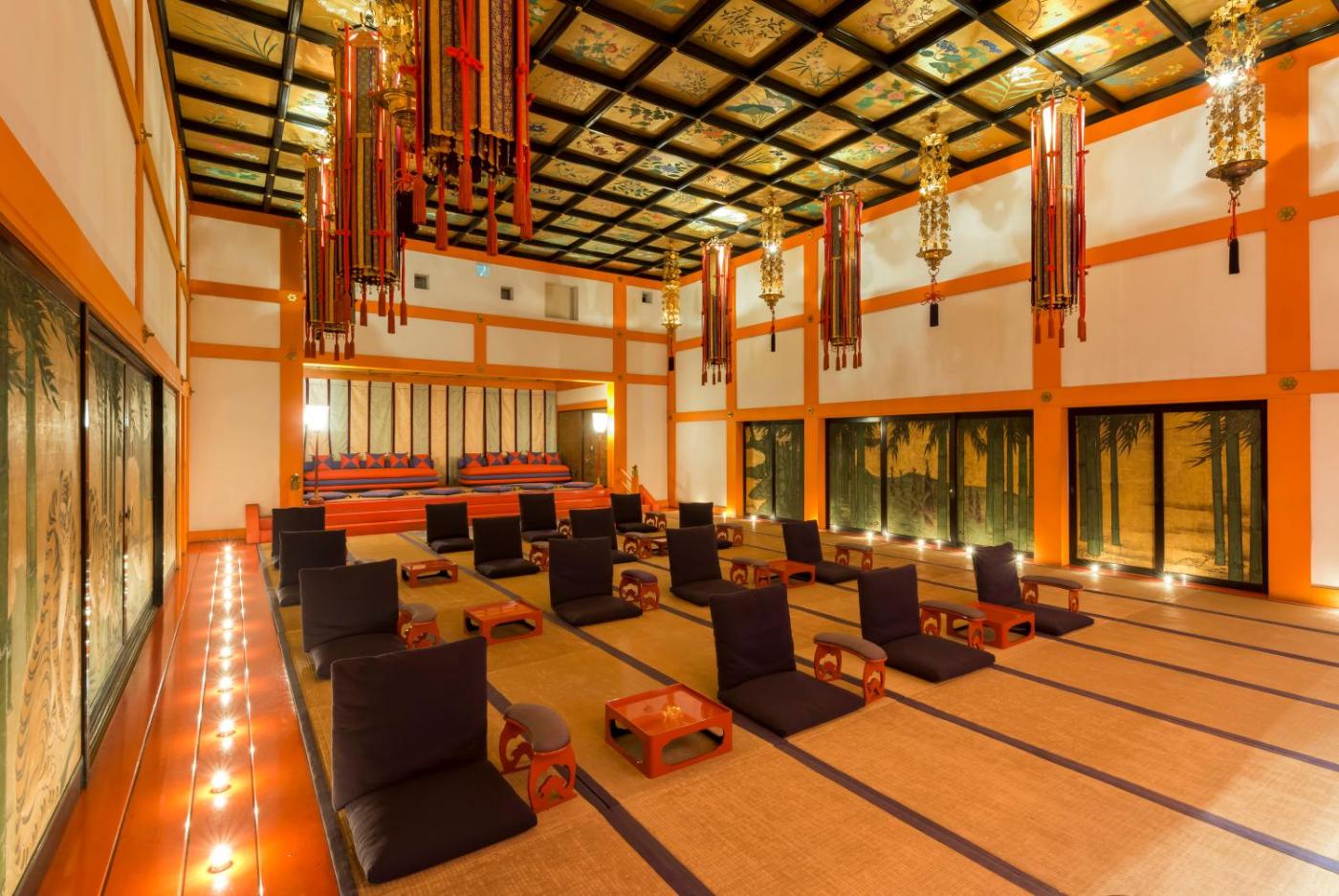 Traditional Japanese cuisine is served in the Sumiya Restaurant and a buffet breakfast is available in the Arboleda, which offers views of the hotel’s gardens and fountains. There is also a poolside bar and a snack bar.