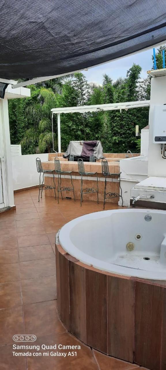 Three-Bedroom House. This luxurious holiday home features a pool with a view, a hot tub and a spa bath. Guests can make meals in the fully equipped kitchen that has a refrigerator, a microwave and a toaster. The spacious air-conditioned holiday home provides a flat-screen TV with streaming services, a washing machine, a private entrance, a tea and coffee maker as well as garden views. The unit offers 7 beds.