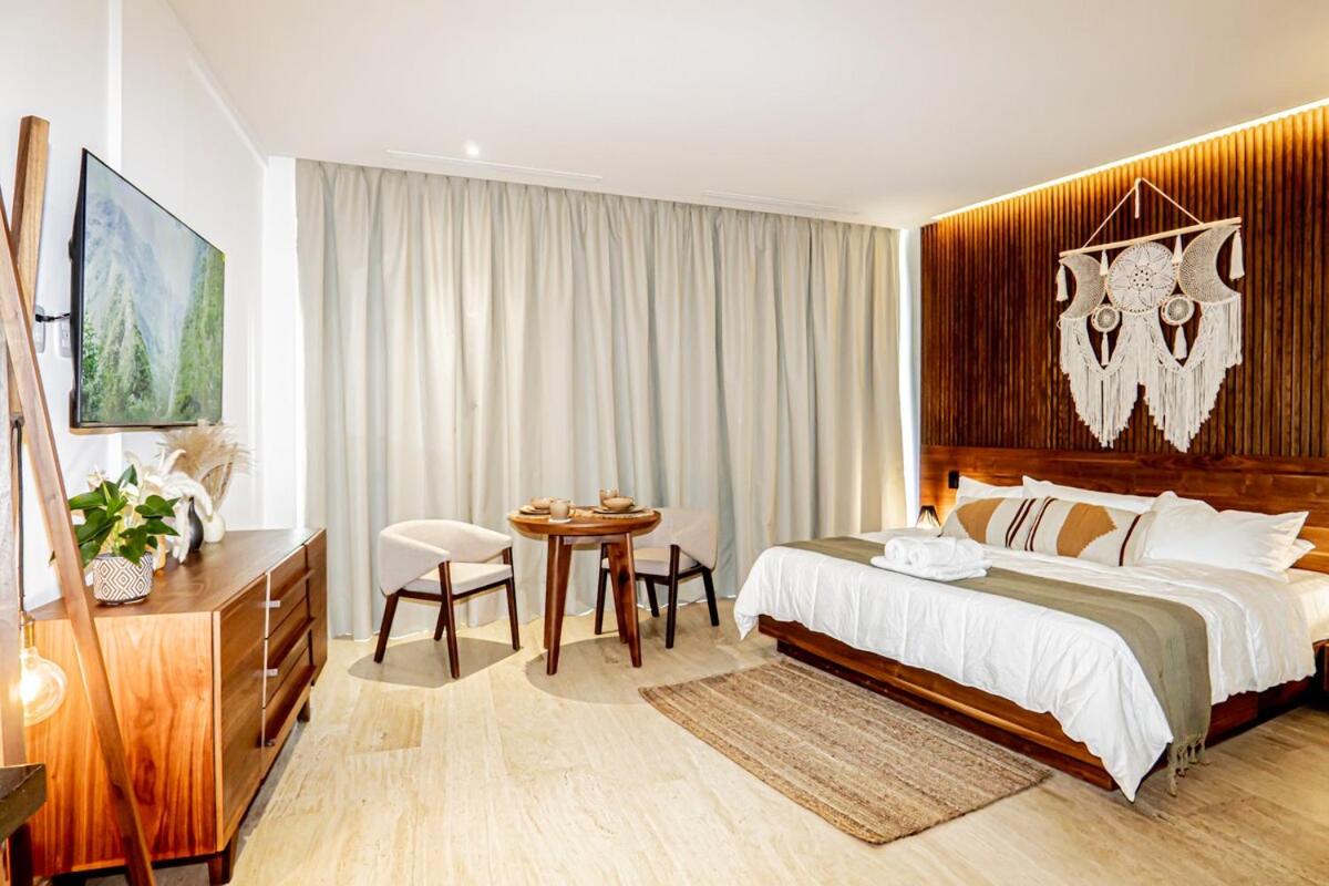 Featuring air-conditioned accommodation with a terrace, Luxurious studio 6 minutes from the beach is located in Tulum. Guests can benefit from a balcony and a year-round outdoor pool. The accommodation provides a hot tub, free WiFi throughout the property and a lift.